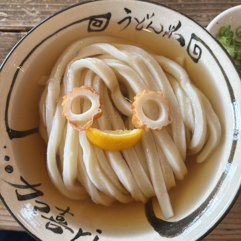 名物は「顔」が描かれたぶっかけうどん!