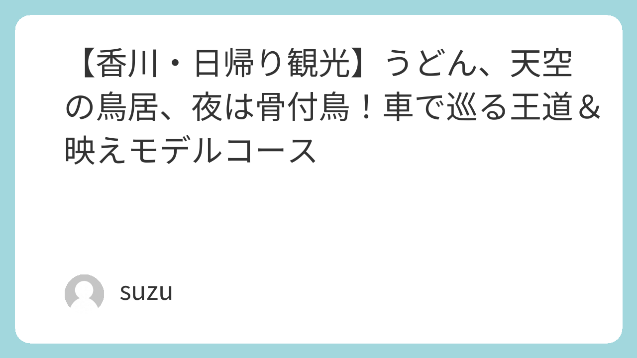香川県はコンパクトで移動しやすく、1日でも十分に大満足の旅行が楽しめます。今度の週末や連休は、ぜひこのルートを参考に、香川県へ足を運んでみてくださいね!