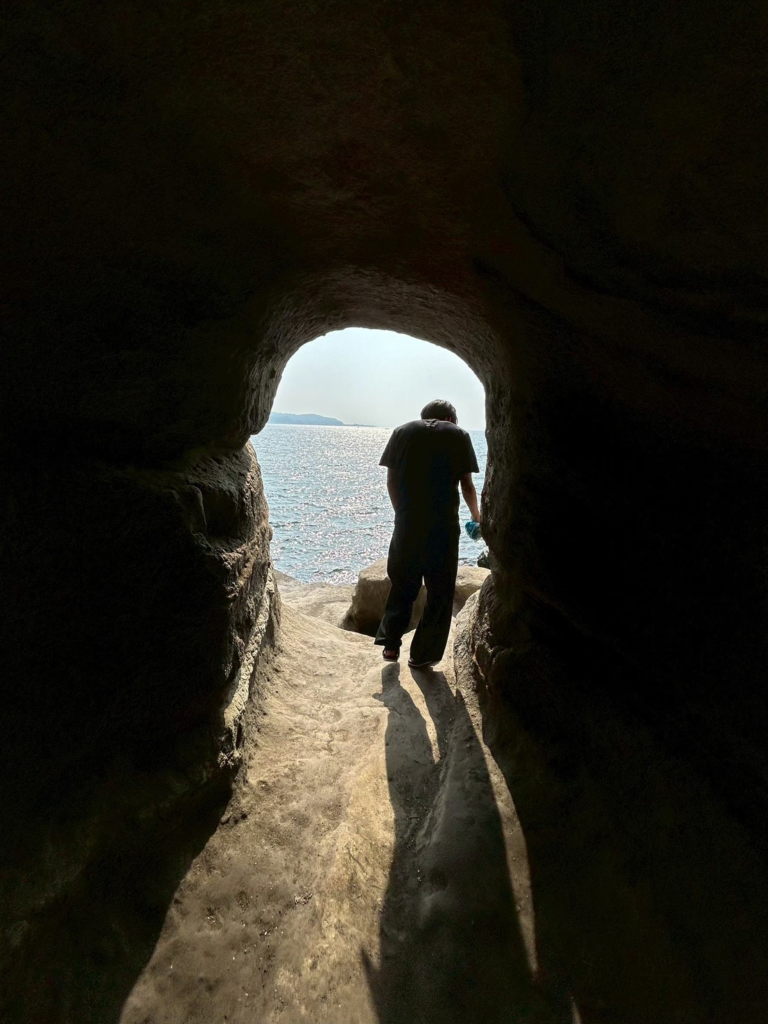 みんなハート型の光(3月・9月の早朝限定)を狙って殺到しますが、正直、普通の時間帯に行っても十分「ジブリ感」はあります。 洞窟の中に水が流れる音が反響して、そこだけ空気が2度くらい低い感じ。この写真は二月の正午に撮った写真。