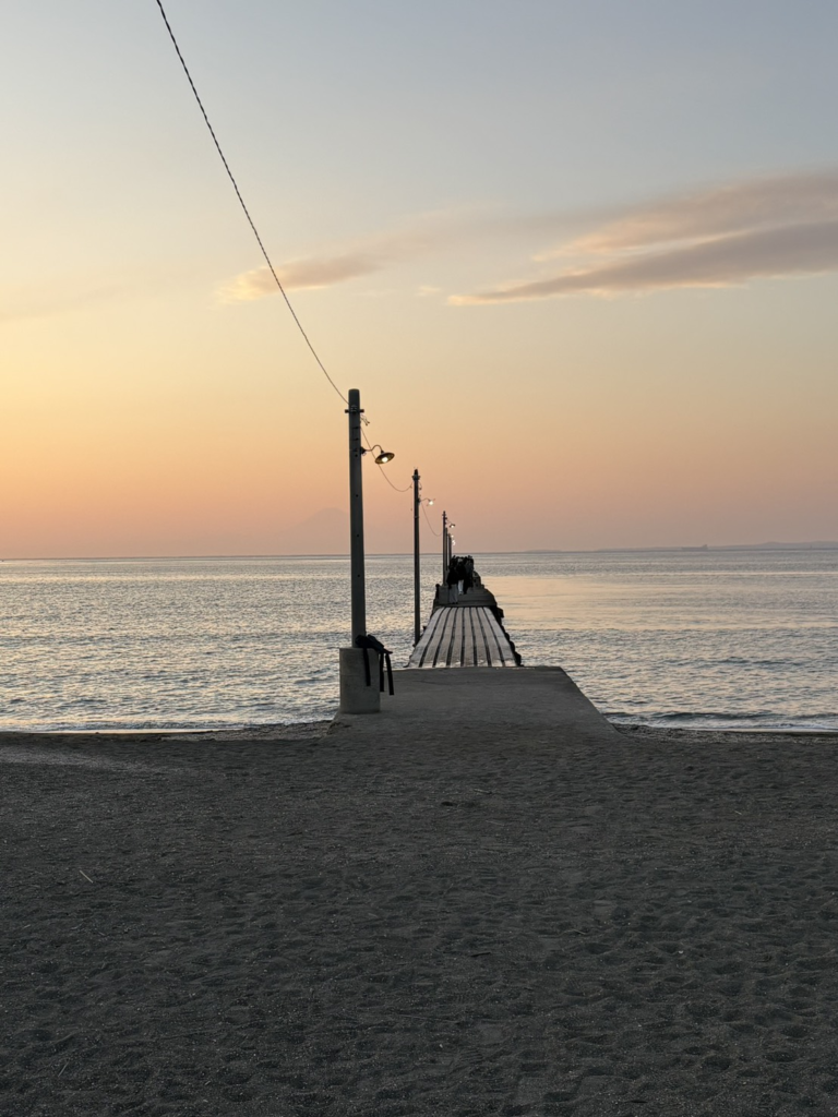 ここは「お洒落な桟橋」なんて生ぬるいもんじゃありません。先端まで行くと、足元の板の間から海が見えて、ちょっと怖いくらいです。でも、そのスリルがあるからこそ、沈んでいく夕日の色が目に焼き付く。